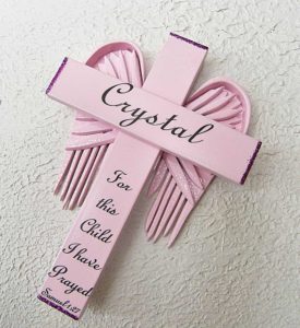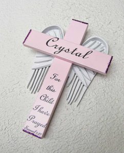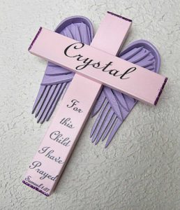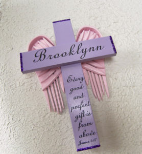 Personalized Angel of the Lord Cross in Violet and Pink Wings ‘Every Good and Perfect Gift is from Above’ James 1:17