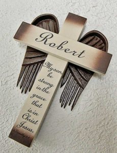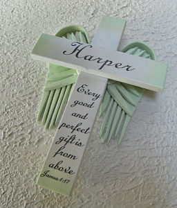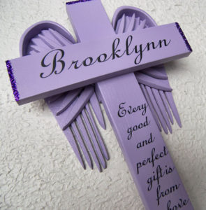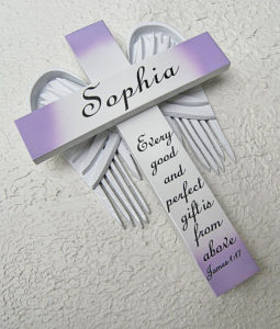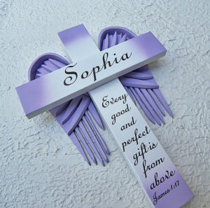 Personalized Angel of the Lord Cross in Violet and Violet Wings ‘Every Good and Perfect Gift is from Above’ James 1:17