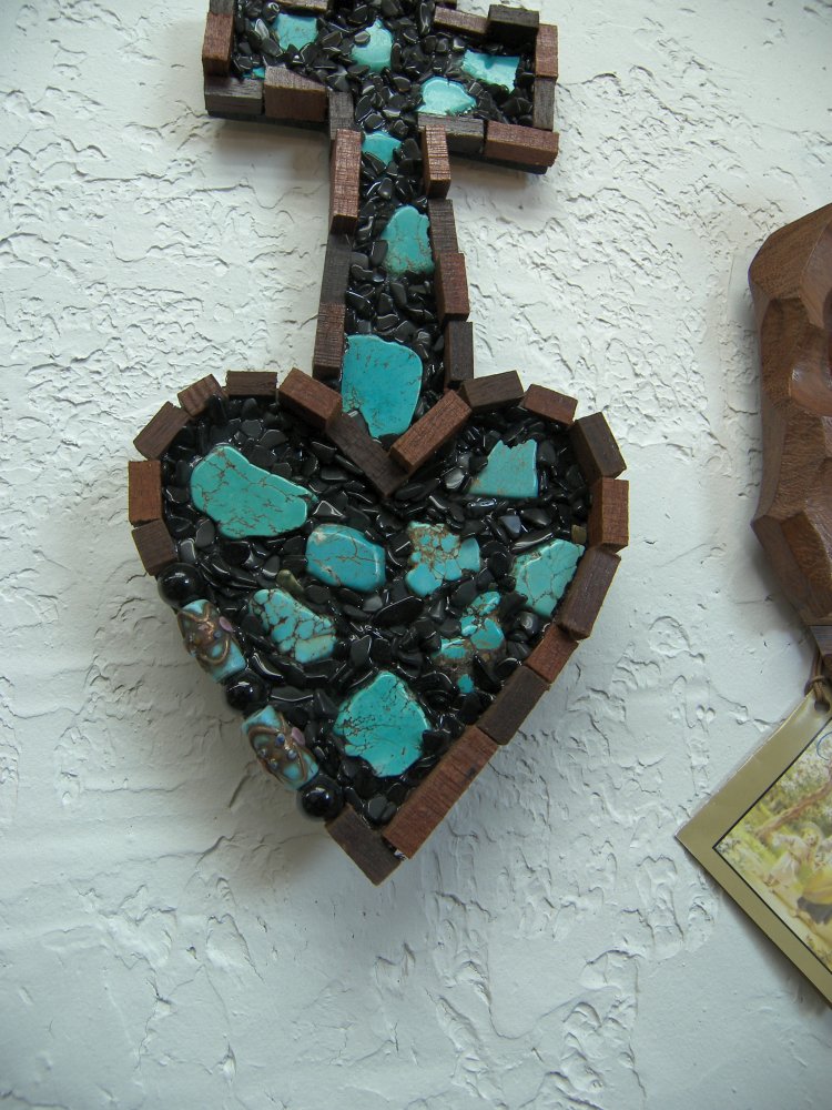 Each Cross is a unique one of a kind Creation, are created from materials provided by God. Enhanced by the artist Kim – God guides my hands on each piece of wood, making each into a beautiful one of a kind cross. As no two people are the same, no two crosses are the same; each is unique and special. The crosses are handcrafted from dark walnut wood. Many designs are for both display as well as for the comfort that comes from holding one in your hand. So that you remember, we are children of God; our Father is always walking with us and holding our hand.