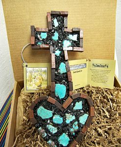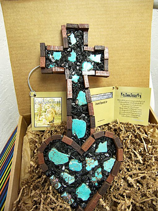 Each of my crosses come packed in a very nice Kraft corrugated box (see photo) with the created especially for Tag.