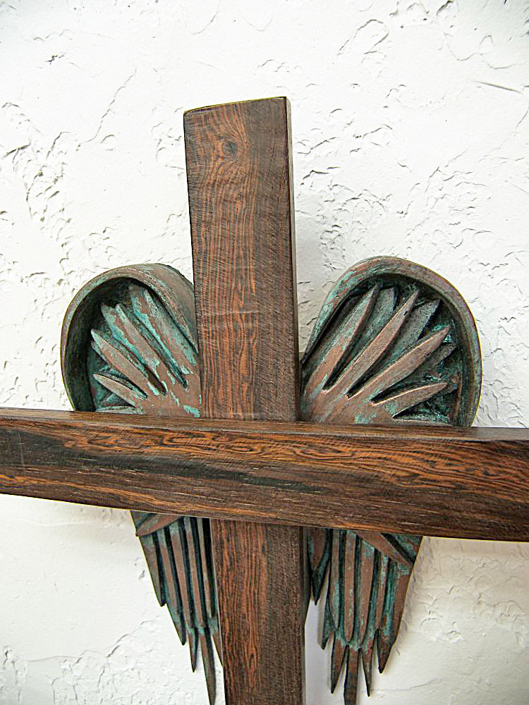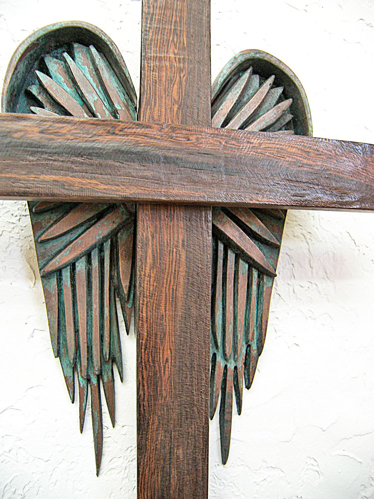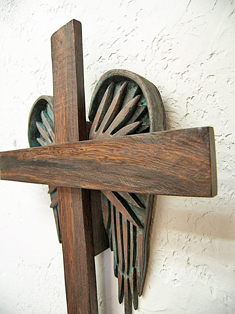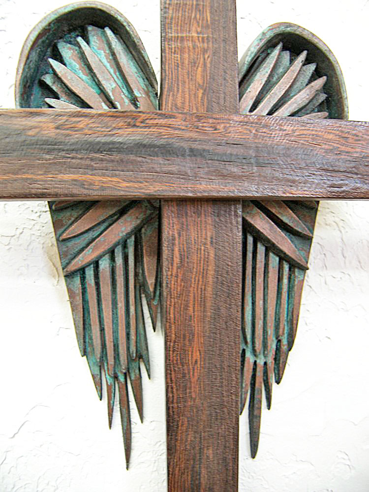 For the Wings I recreated my original wood wings using a copper cold cast method. Then antique the copper, giving a blue green patina.