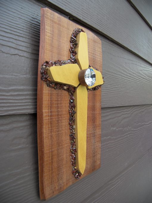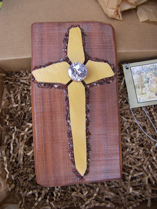 Each Cross is a unique one of a kind Creation, are created from materials provided by God. Enhanced by the artist Kim – God guides my hands on each piece of wood, making each into a beautiful one of a kind cross. As no two people are the same, no two crosses are the same; each is unique and special. Many designs are for both display as well as for the comfort that comes from holding one in your hand. So that you remember, we are children of God; our Father is always walking with us and holding our hand.