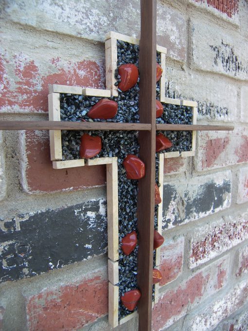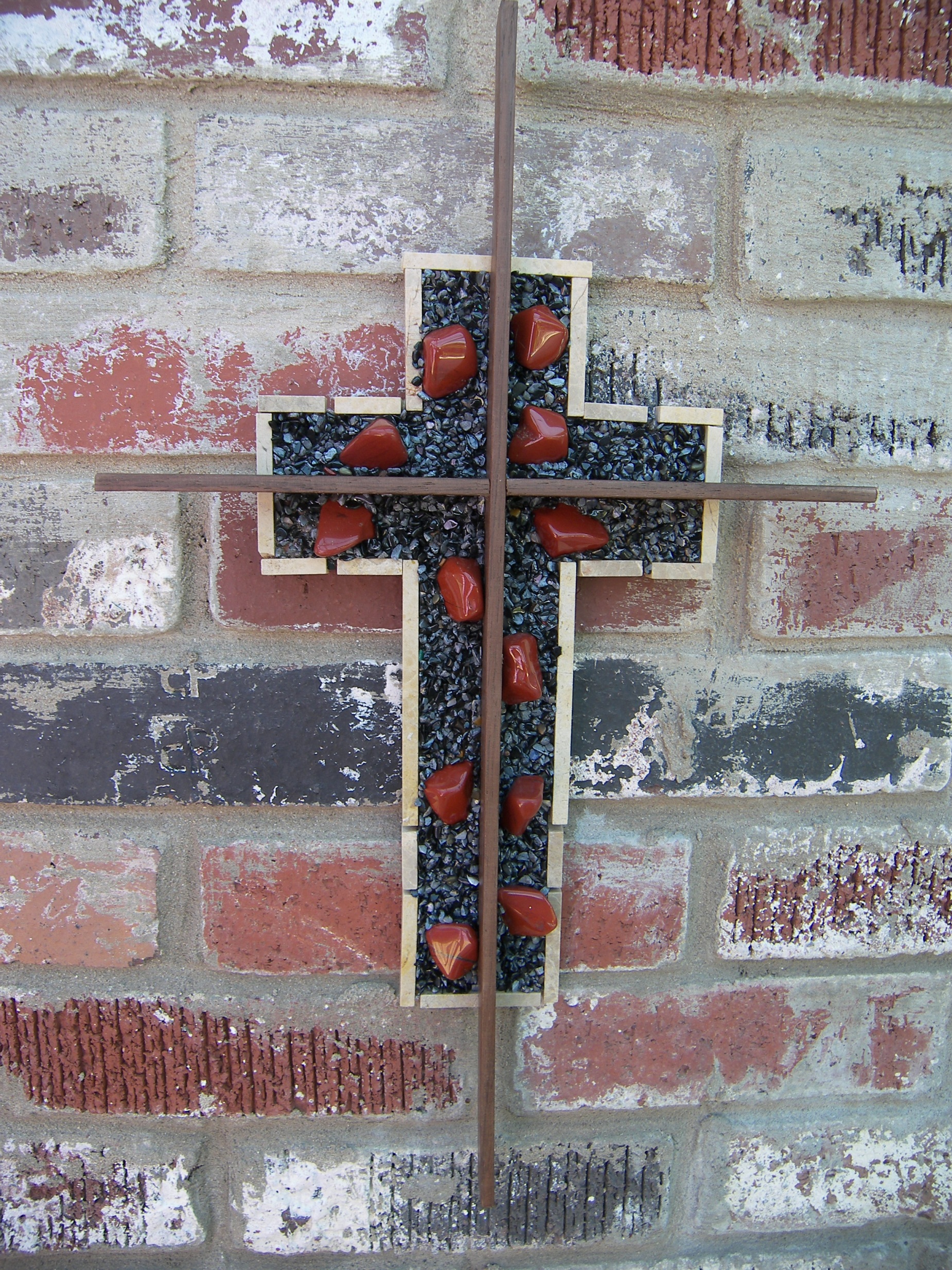 Each Cross is a unique one of a kind Creation, are created from materials provided by God. Enhanced by the artist Kim – God guides my hands on each piece of wood, making each into a beautiful one of a kind cross. As no two people are the same, no two crosses are the same; each is unique and special. The crosses are handcrafted from dark walnut wood. Many designs are for both display as well as for the comfort that comes from holding one in your hand. So that you remember, we are children of God; our Father is always walking with us and holding our hand.