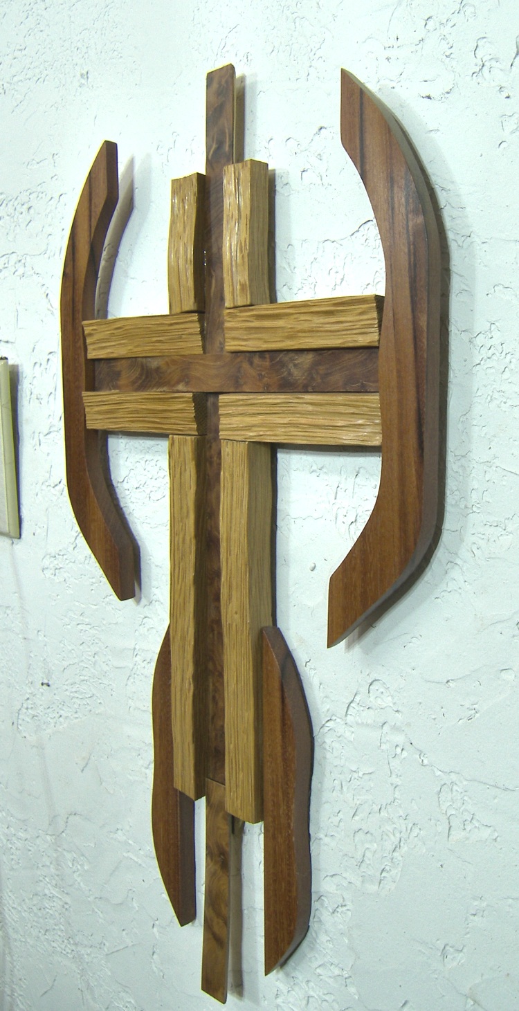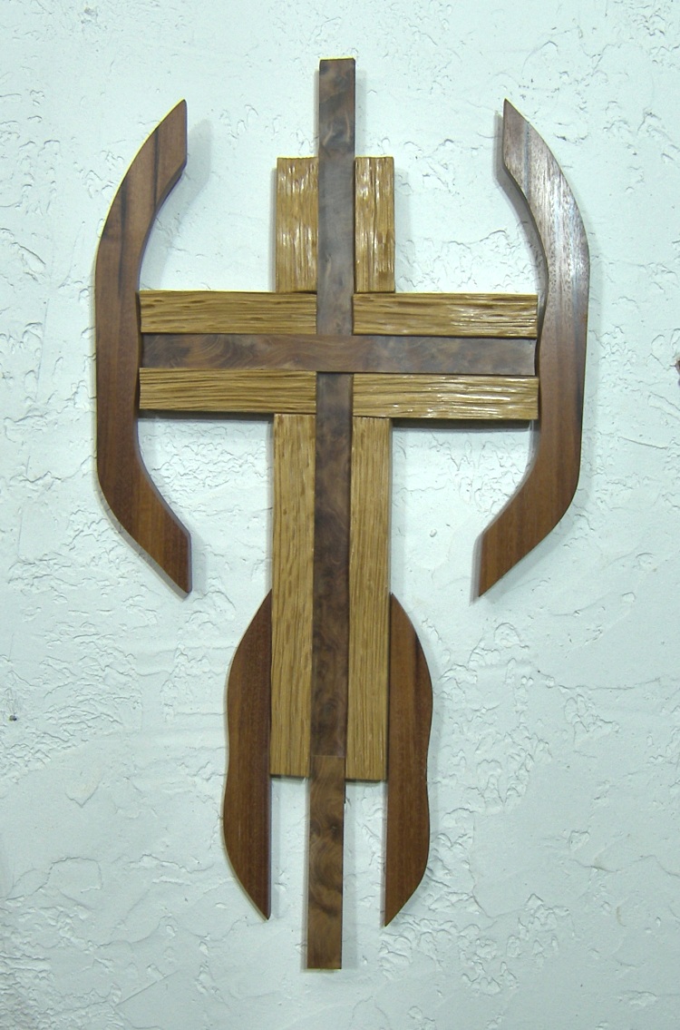 Each Cross is a unique one of a kind Creation, are created from materials provided by God. Enhanced by the artist Kim – God guides my hands on each piece of wood, making each into a beautiful one of a kind cross. As no two people are the same, no two crosses are the same; each is unique and special. The crosses are handcrafted from dark walnut wood. Many designs are for both display as well as for the comfort that comes from holding one in your hand. So that you remember, we are children of God; our Father is always walking with us and holding our hand.
