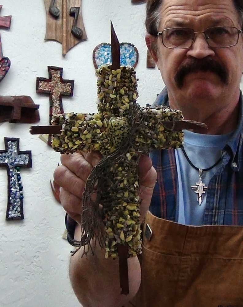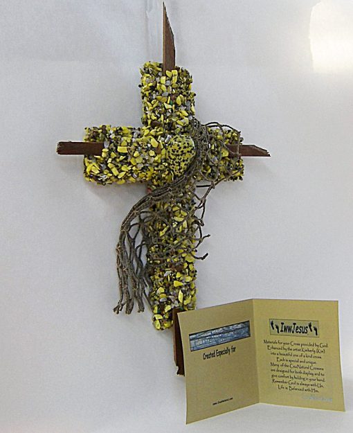 Each Cross is a unique one of a kind Creation, are created from materials provided by God. Enhanced by the artist Kim – God guides my hands on each piece of wood, making each into a beautiful one of a kind cross. As no two people are the same, no two crosses are the same; each is unique and special. Many designs are for both display as well as for the comfort that comes from holding one in your hand. So that you remember, we are children of God; our Father is always walking with us and holding our hand.