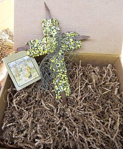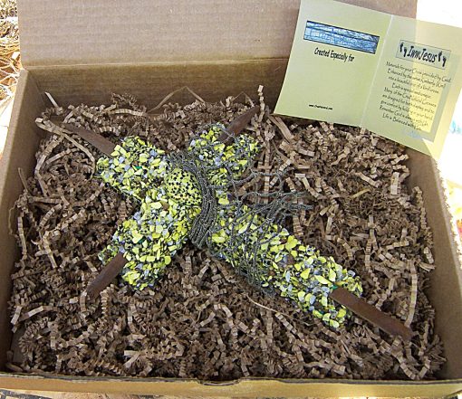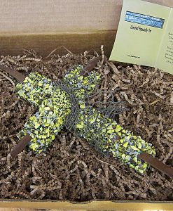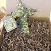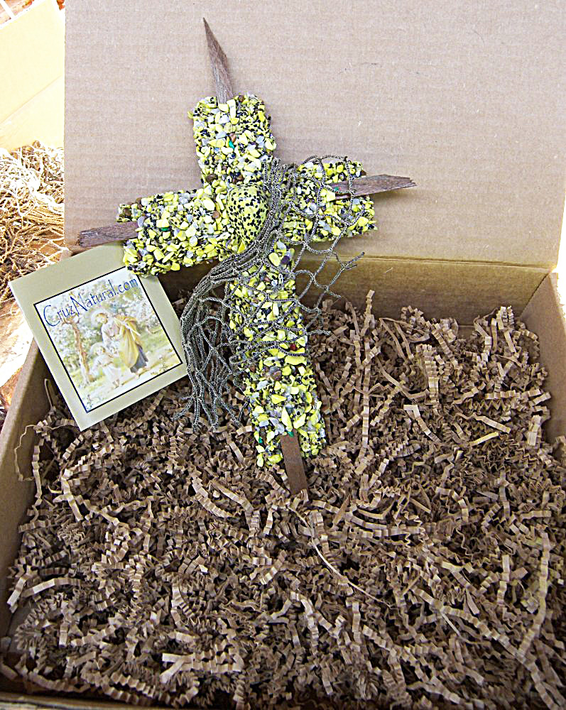 Each of my crosses come packed in a very nice Kraft corrugated box (see photo) with the created especially for Tag.