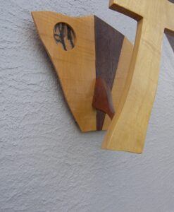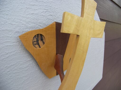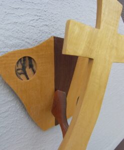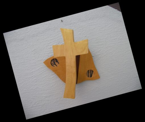Each Cross is a unique one of a kind Creation, are created from materials provided by God. Enhanced by the artist Kim – God guides my hands on each piece of wood, making each into a beautiful one of a kind cross. As no two people are the same, no two crosses are the same; each is unique and special. The crosses are handcrafted from dark walnut wood. Many designs are for both display as well as for the comfort that comes from holding one in your hand. So that you remember, we are children of God; our Father is always walking with us and holding our hand.