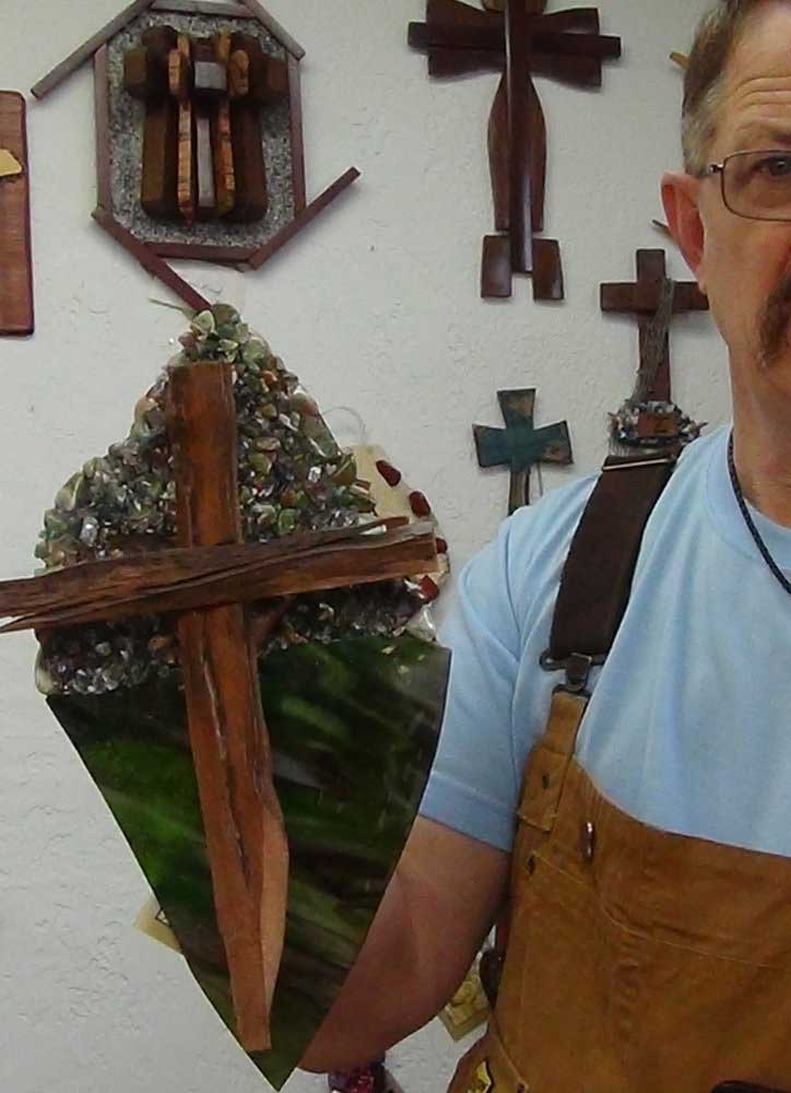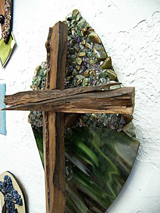 Each Cross is a unique one of a kind Creation, are created from materials provided by God. Enhanced by the artist Kim – God guides my hands on each piece of wood, making each into a beautiful one of a kind cross. As no two people are the same, no two crosses are the same; each is unique and special. The crosses are handcrafted from dark walnut wood. Many designs are for both display as well as for the comfort that comes from holding one in your hand. So that you remember, we are children of God; our Father is always walking with us and holding our hand.