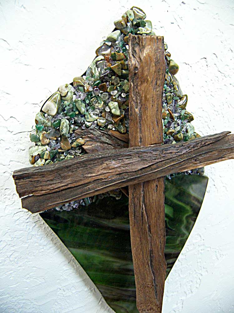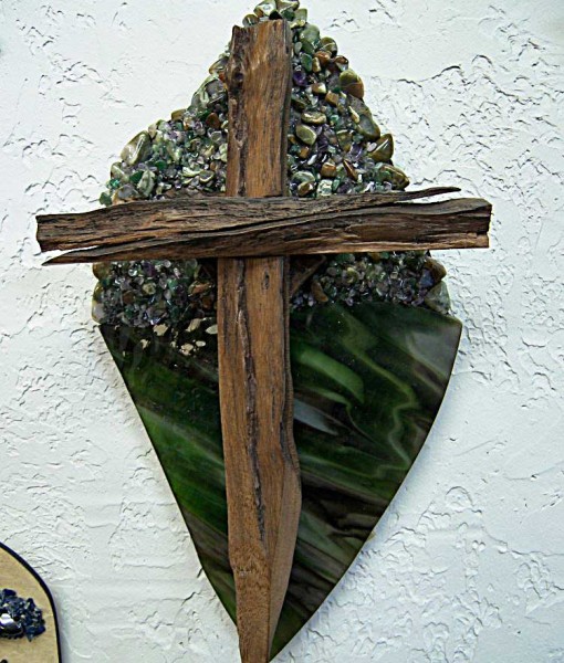 Set on a plaque of Stain Glass and Stones.