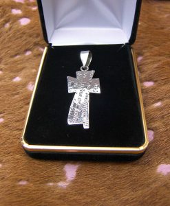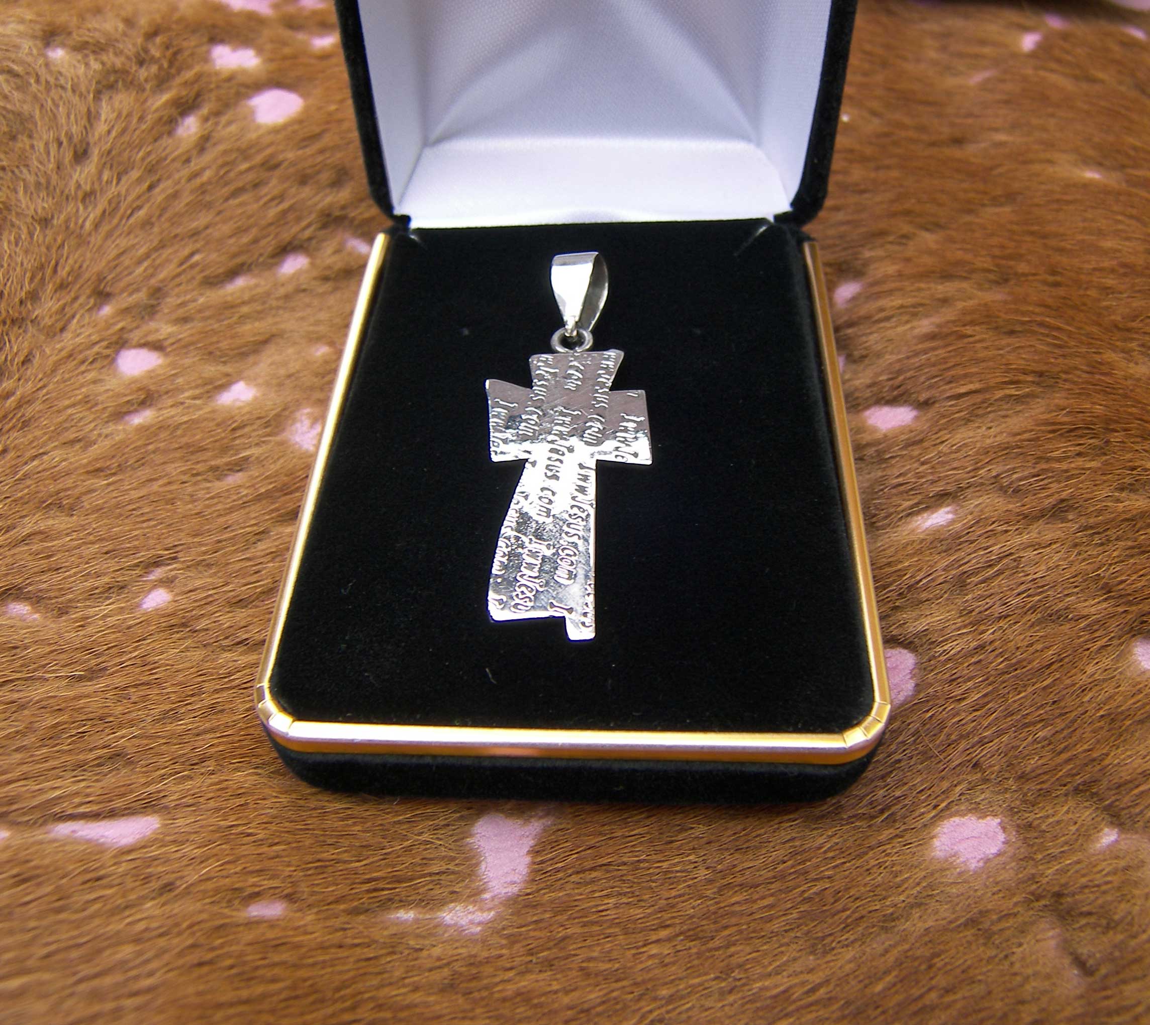 The designs for all the Jewelry are taken from the artist’s original wooden Crosses. Hence, making them a Unique cross collection of jewelry. All piece are made of .950 sterling silver.