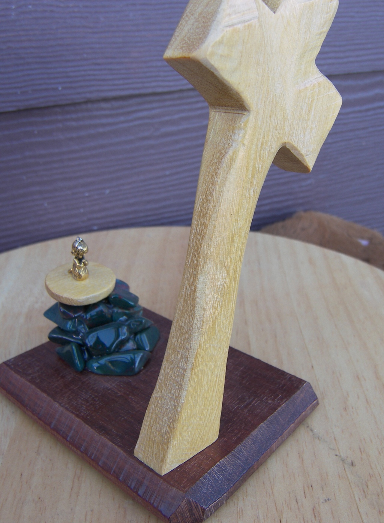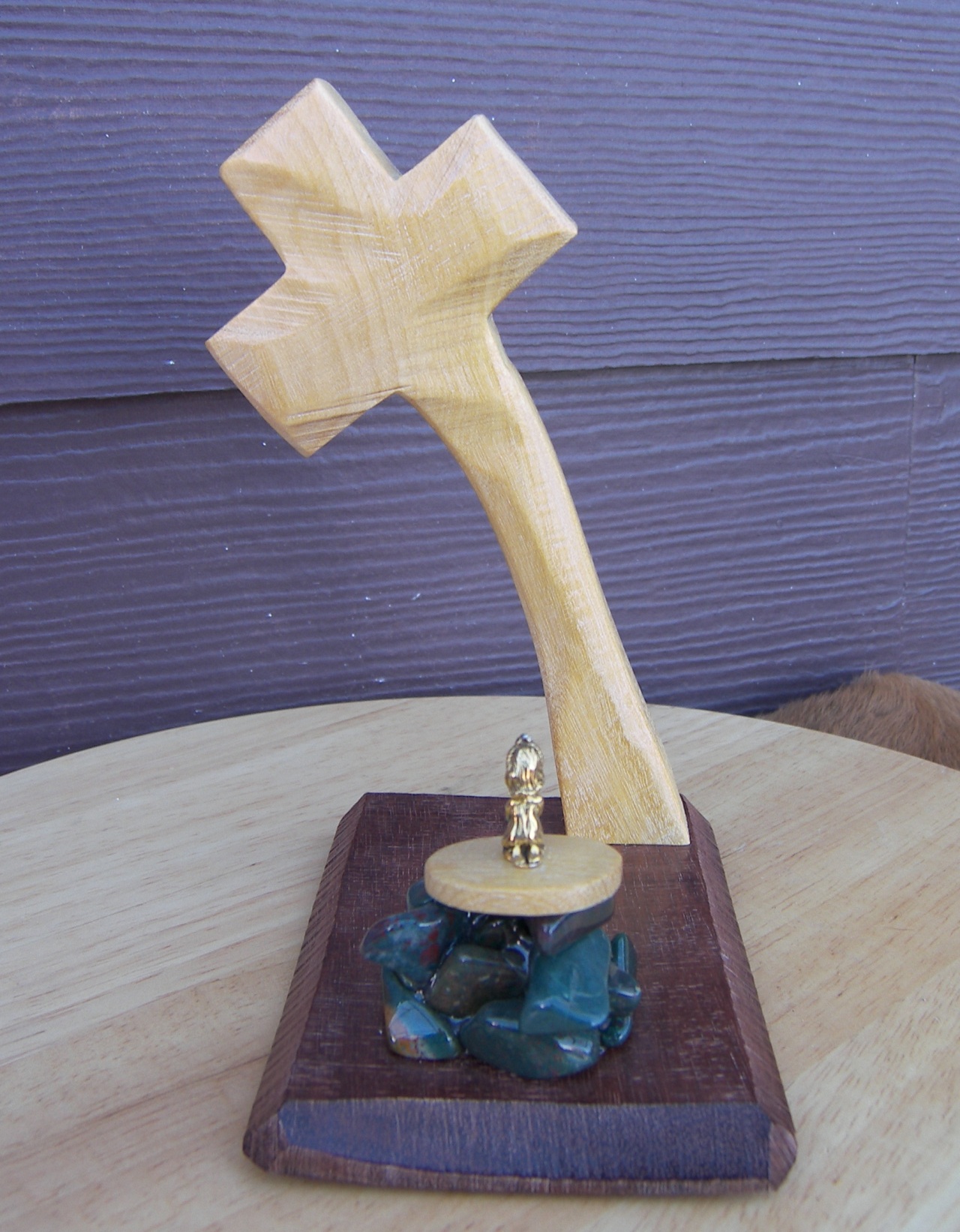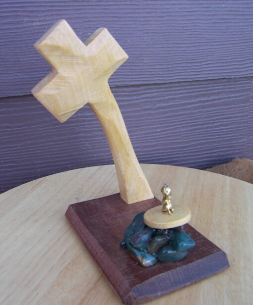 Each Cross is a unique one of a kind Creation, are created from materials provided by God. Enhanced by the artist Kim – God guides my hands on each piece of wood, making each into a beautiful one of a kind cross. As no two people are the same, no two crosses are the same; each is unique and special. Many designs are for both display as well as for the comfort that comes from holding one in your hand. So that you remember, we are children of God; our Father is always walking with us and holding our hand.