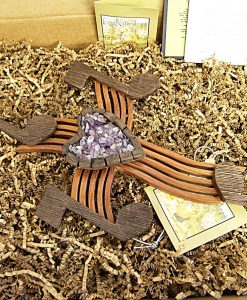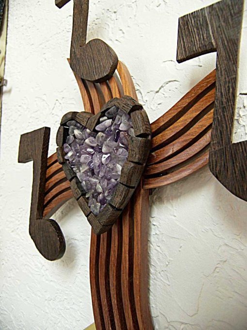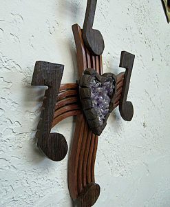 Each Cross is a unique one of a kind Creation, are created from materials provided by God. Enhanced by the artist Kim – God guides my hands on each piece of wood, making each into a beautiful one of a kind cross. As no two people are the same, no two crosses are the same; each is unique and special. The crosses are handcrafted from dark walnut wood. Many designs are for both display as well as for the comfort that comes from holding one in your hand. So that you remember, we are children of God; our Father is always walking with us and holding our hand.