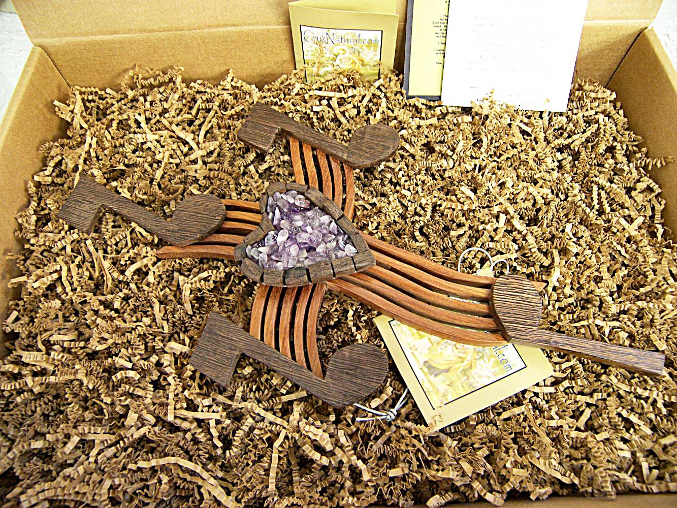 Each of my crosses come packed in a very nice Kraft corrugated box (see photo) with the created especially for Tag.