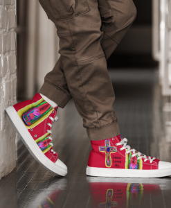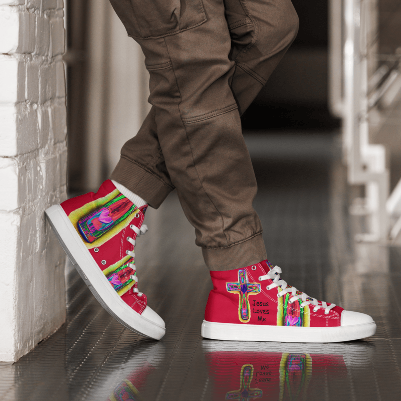 Art work for these Shoes taken from my Original Art Work. After many hours of designing. My wish is that I incorporate a look that would show just how much you Love Jesus. Showing the Love of Jesus on each of my Shoes Designs.