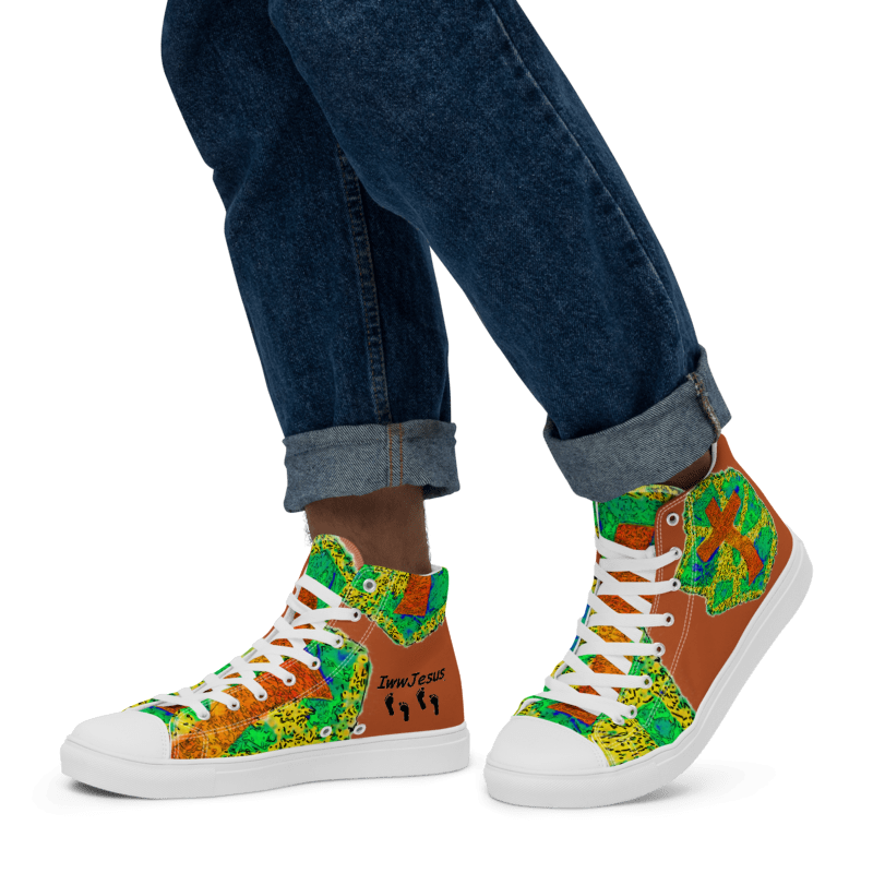 Art work for these Shoes taken from my Original Art Work. After many hours of designing. My wish is that I incorporate a look that would show just how much you Love Jesus. Showing the Love of Jesus on each of my Shoes Designs.