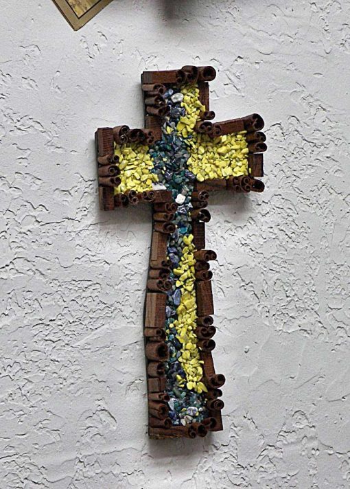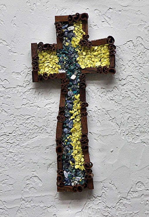 Each Cross is a unique one of a kind Creation, are created from materials provided by God. Enhanced by the artist Kim – God guides my hands on each piece of wood, making each into a beautiful one of a kind cross. As no two people are the same, no two crosses are the same; each is unique and special. Many designs are for both display as well as for the comfort that comes from holding one in your hand. So that you remember, we are children of God; our Father is always walking with us and holding our hand.