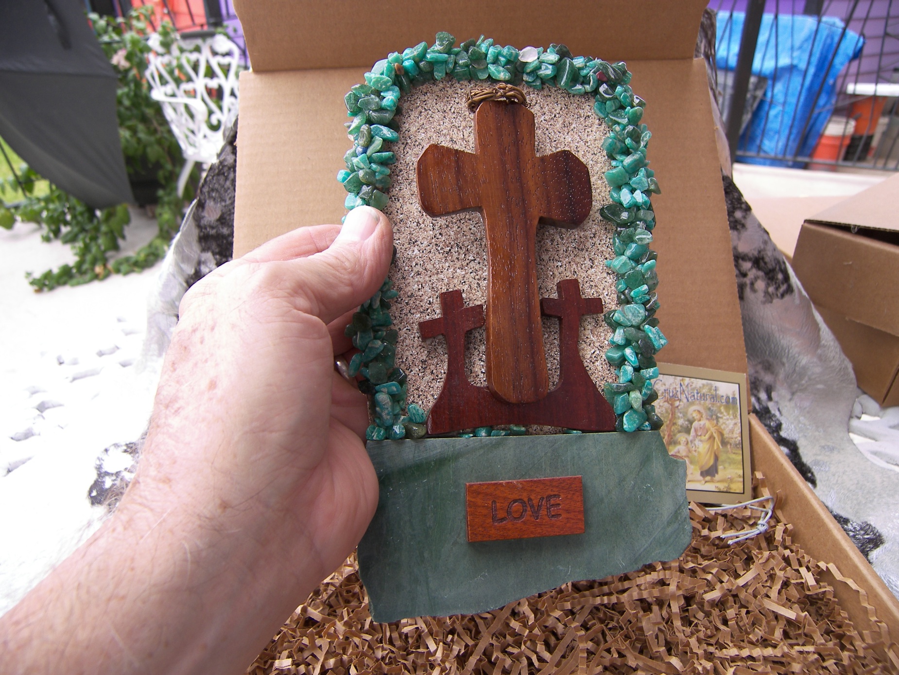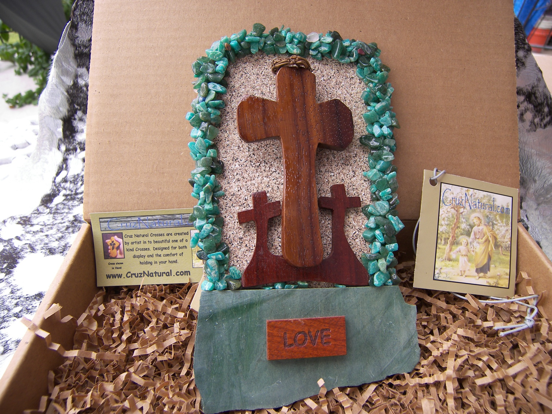 Each of my crosses come packed in a very nice Kraft corrugated box with the created especially for Tag.