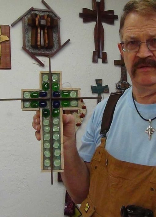 Each Cross is a unique one of a kind Creation, are created from materials provided by God. Enhanced by the artist Kim – God guides my hands on each piece of wood, making each into a beautiful one of a kind cross. As no two people are the same, no two crosses are the same; each is unique and special. The crosses are handcrafted from dark walnut wood. Many designs are for both display as well as for the comfort that comes from holding one in your hand. So that you remember, we are children of God; our Father is always walking with us and holding our hand.