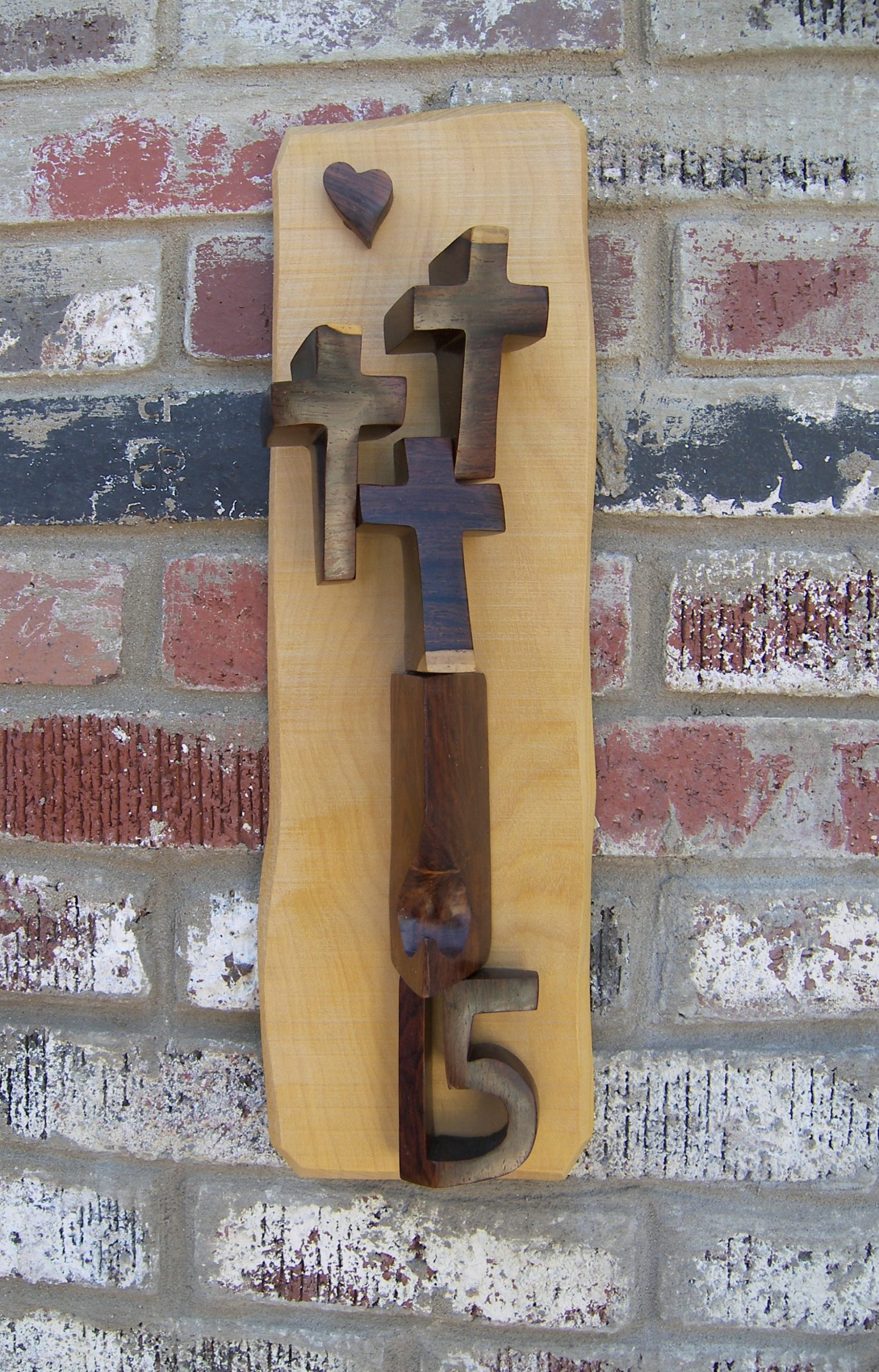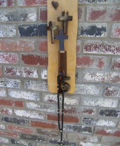 Each Cross is a unique one of a kind Creation, are created from materials provided by God. Enhanced by the artist Kim – God guides my hands on each piece of wood, making each into a beautiful one of a kind cross. As no two people are the same, no two crosses are the same; each is unique and special. Many designs are for both display as well as for the comfort that comes from holding one in your hand. So that you remember, we are children of God; our Father is always walking with us and holding our hand.