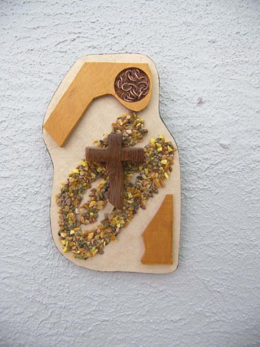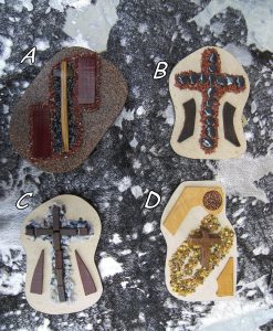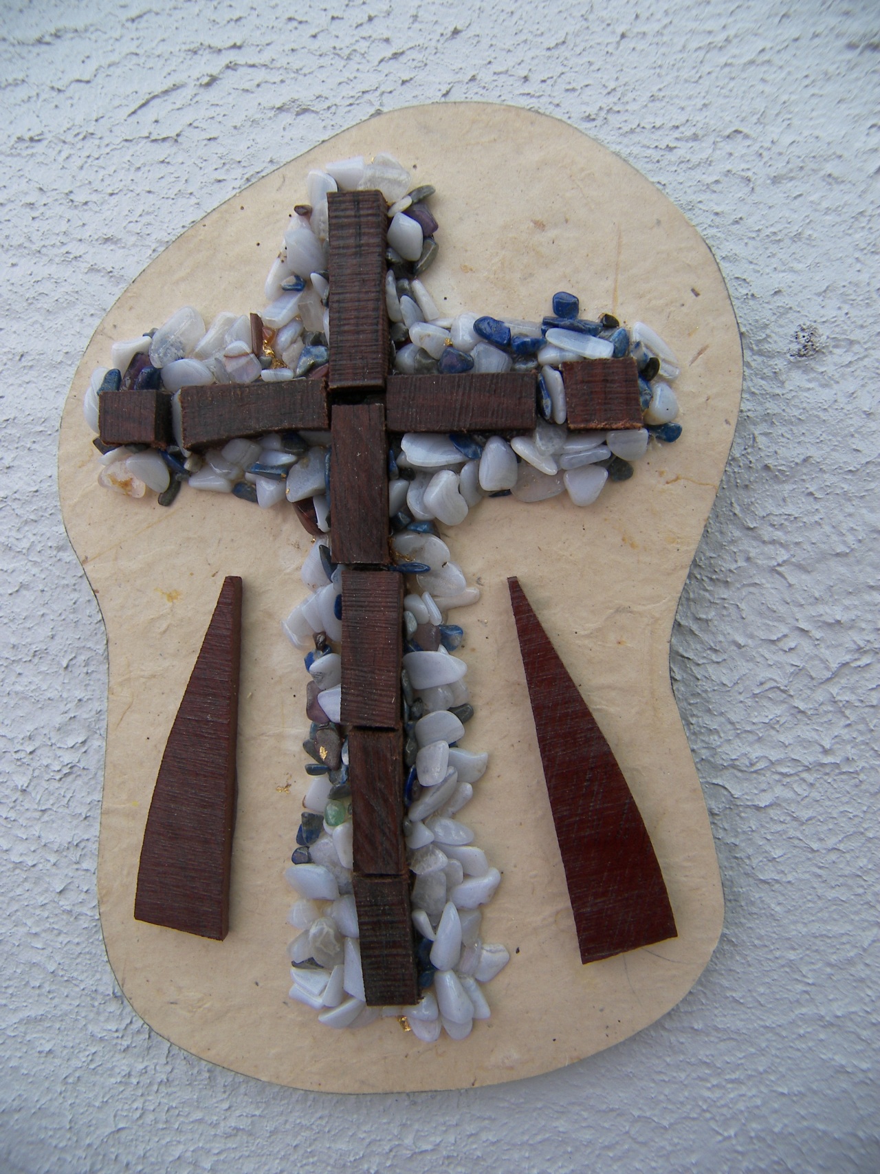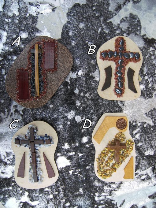 Each Cross is a unique one of a kind Creation, are created from materials provided by God. Enhanced by the artist Kim – God guides my hands on each piece of wood, making each into a beautiful one of a kind cross. As no two people are the same, no two crosses are the same; each is unique and special. Many designs are for both display as well as for the comfort that comes from holding one in your hand. So that you remember, we are children of God; our Father is always walking with us and holding our hand.