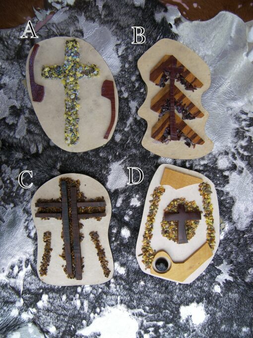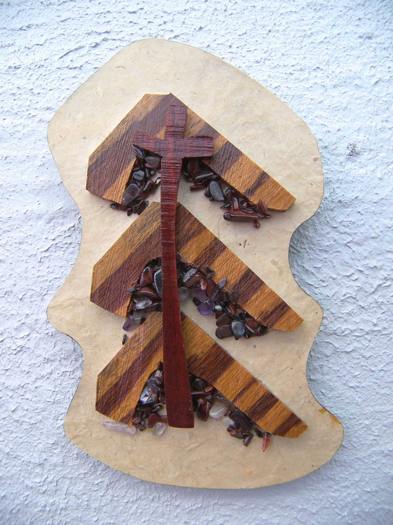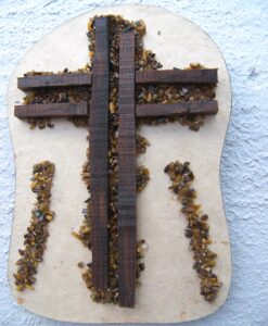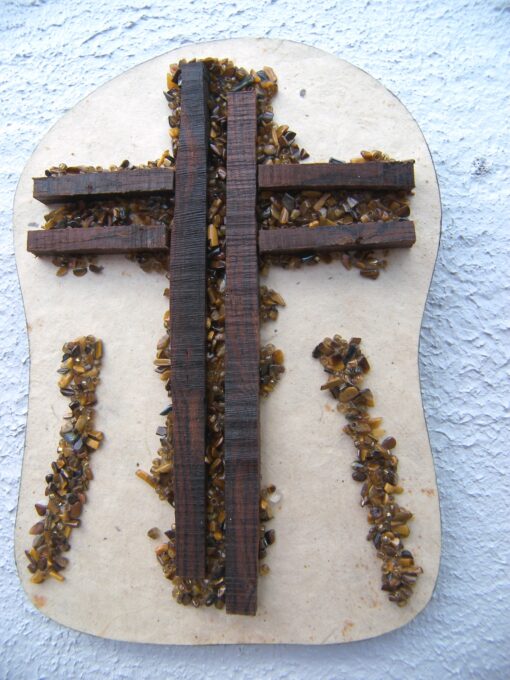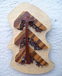 Each Cross is a unique one of a kind Creation, are created from materials provided by God. Enhanced by the artist Kim – God guides my hands on each piece of wood, making each into a beautiful one of a kind cross. As no two people are the same, no two crosses are the same; each is unique and special. Many designs are for both display as well as for the comfort that comes from holding one in your hand. So that you remember, we are children of God; our Father is always walking with us and holding our hand.