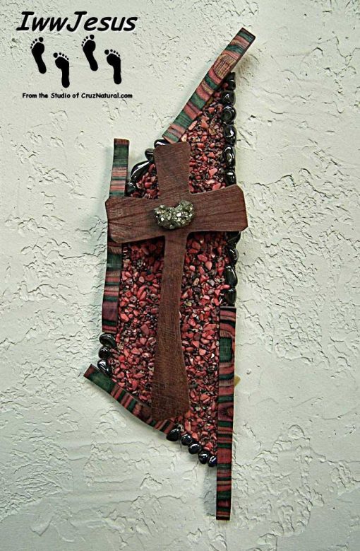 Each Cross is a unique one of a kind Creation, are created from materials provided by God. Enhanced by the artist Kim – God guides my hands on each piece of wood, making each into a beautiful one of a kind cross. As no two people are the same, no two crosses are the same; each is unique and special. The crosses are handcrafted from dark walnut wood. Many designs are for both display as well as for the comfort that comes from holding one in your hand. So that you remember, we are children of God; our Father is always walking with us and holding our hand.