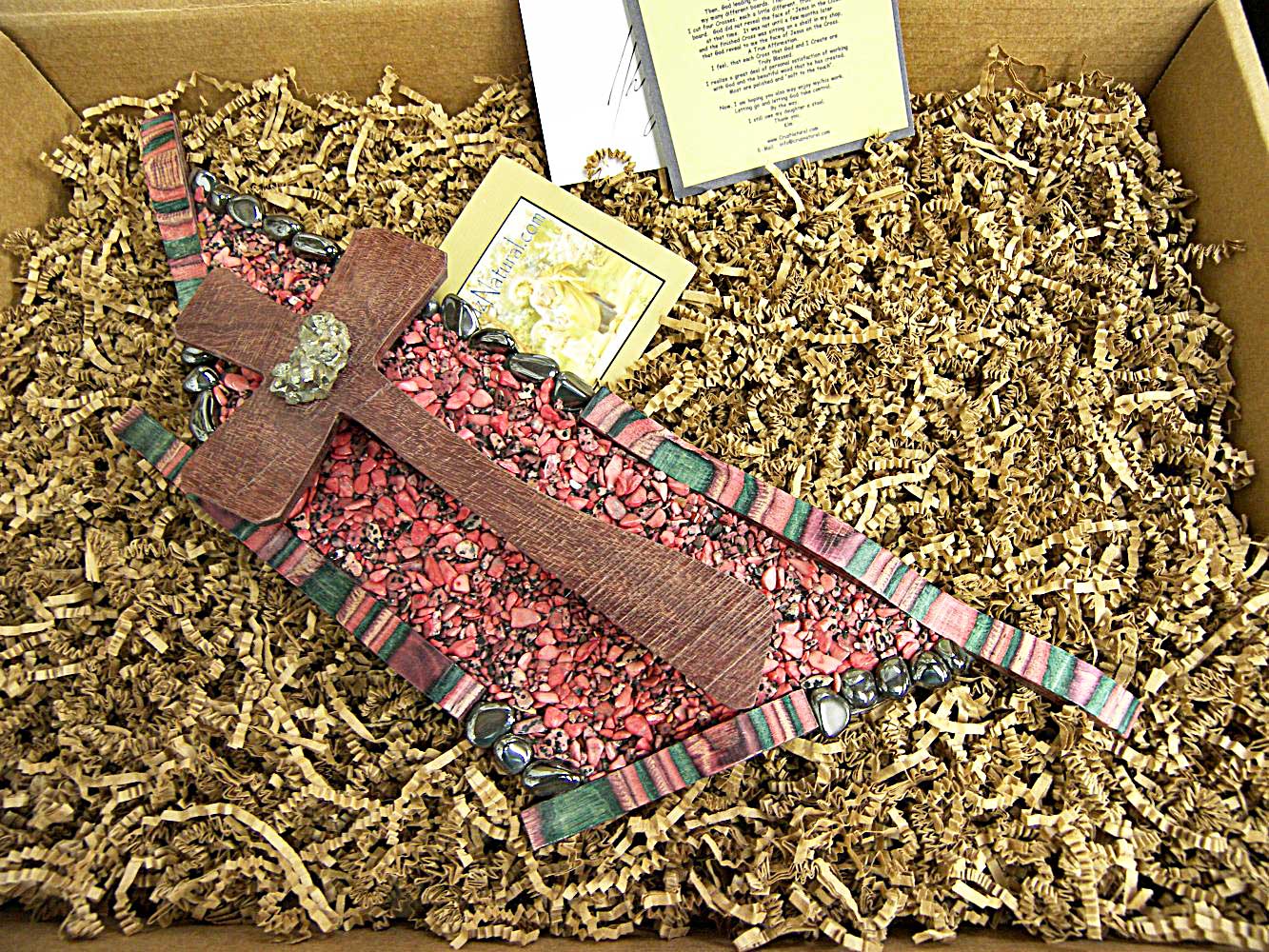 Each of my crosses come packed in a very nice Kraft corrugated box with the created especially for Tag.