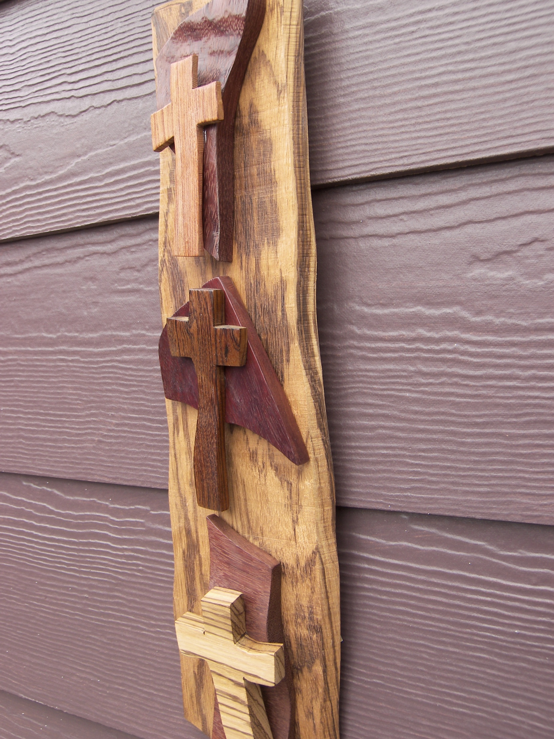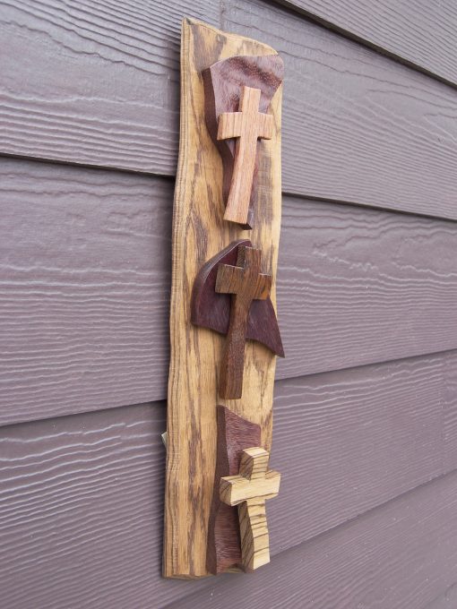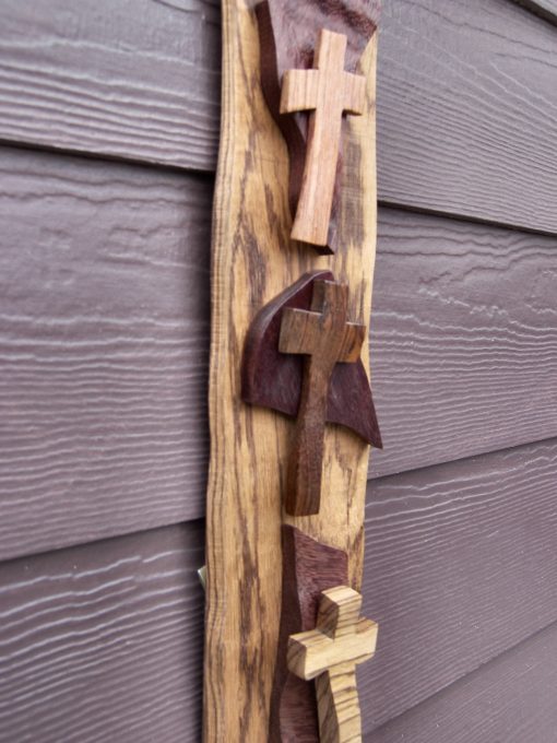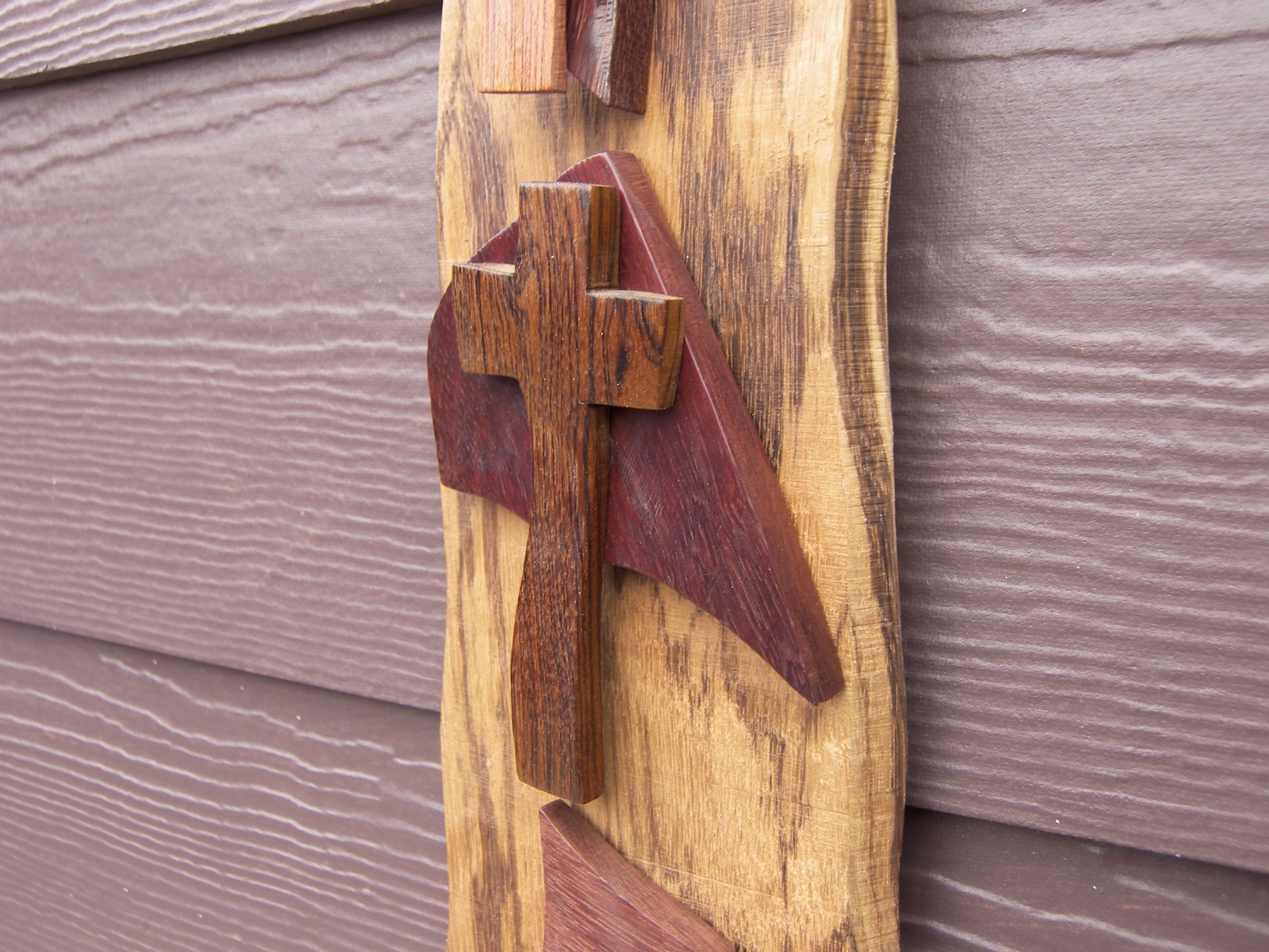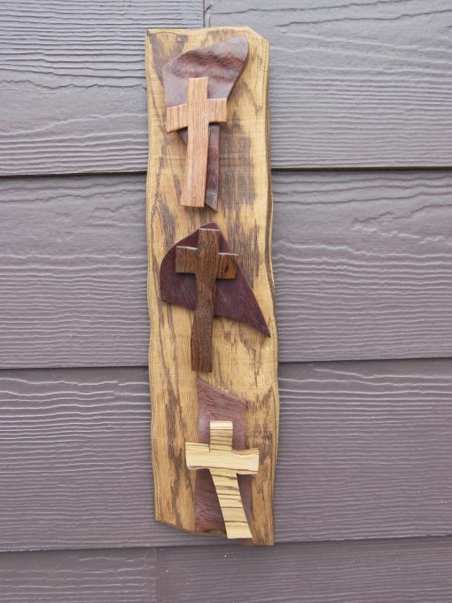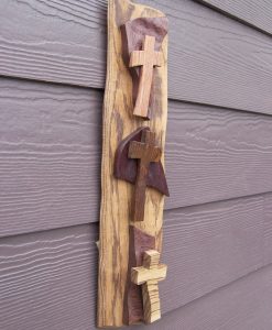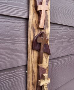 Each Cross is a unique one of a kind Creation, are created from materials provided by God. Enhanced by the artist Kim – God guides my hands on each piece of wood, making each into a beautiful one of a kind cross. As no two people are the same, no two crosses are the same; each is unique and special. Many designs are for both display as well as for the comfort that comes from holding one in your hand. So that you remember, we are children of God; our Father is always walking with us and holding our hand.