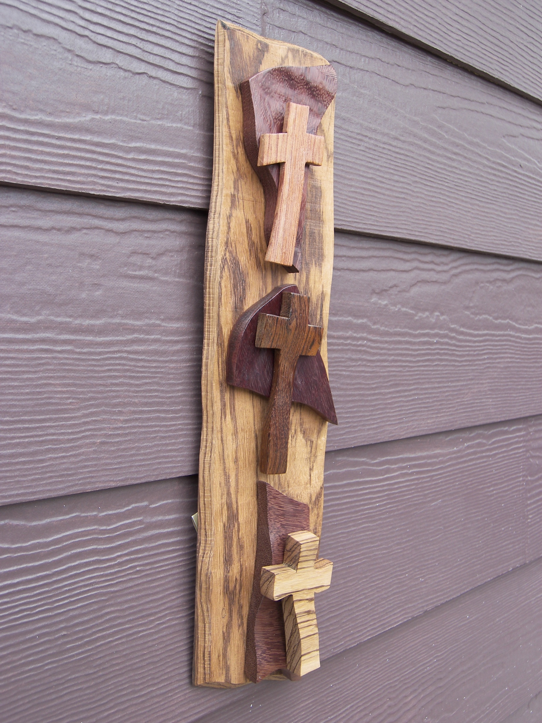 The three Crosses are natural no stain or sealers, just the natural beauty of the wood.