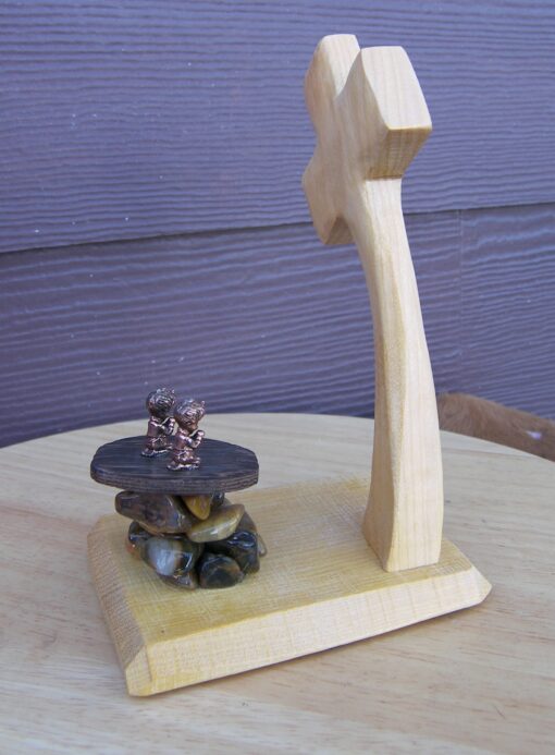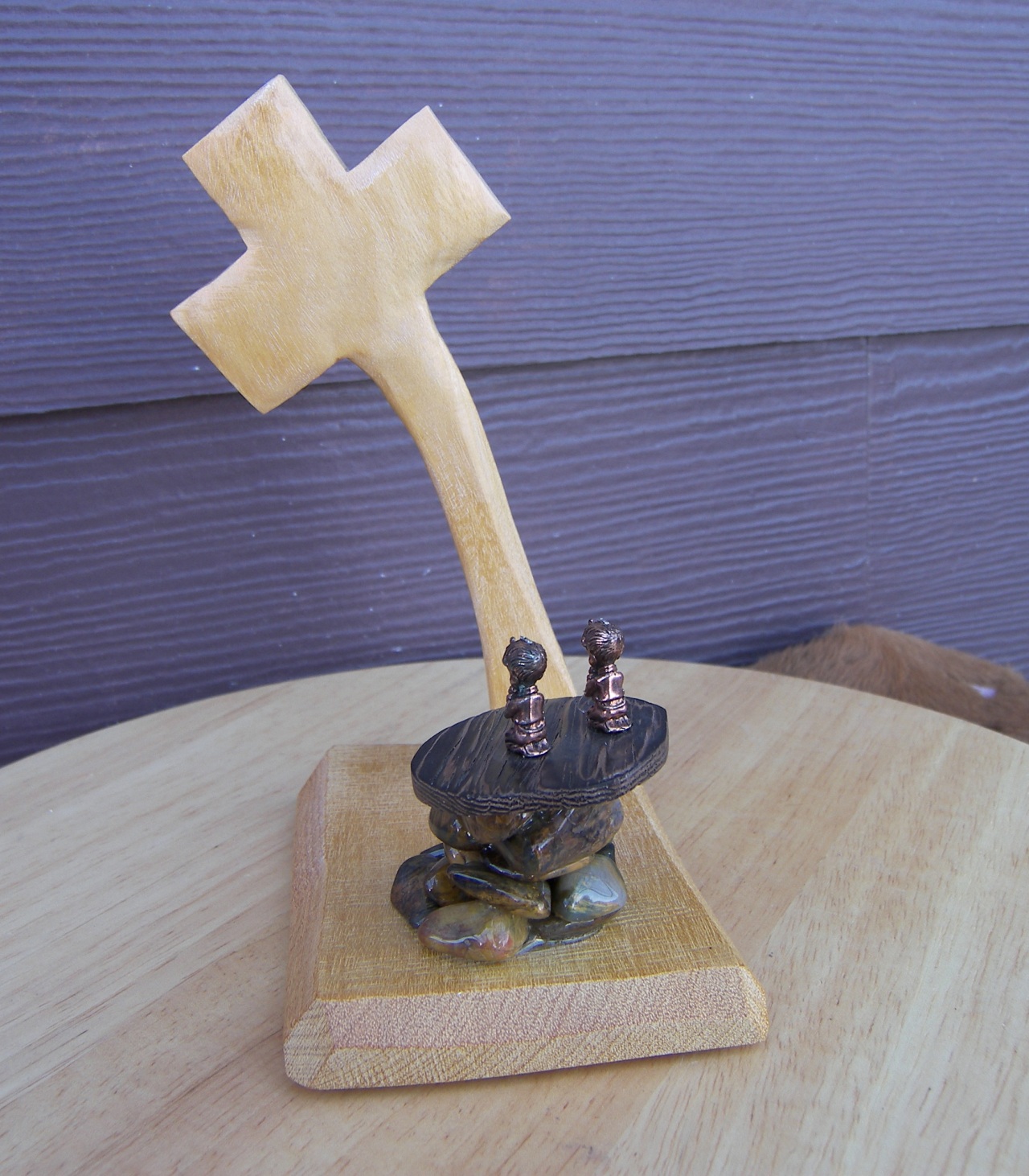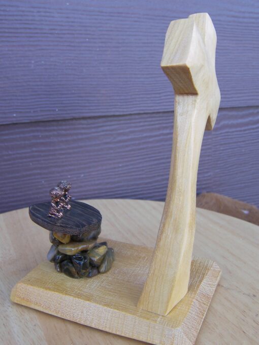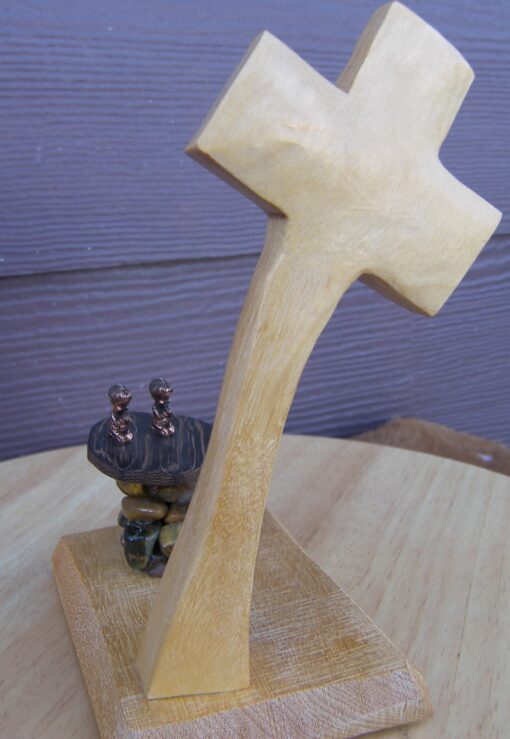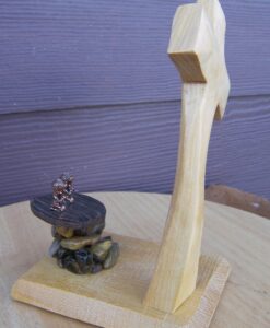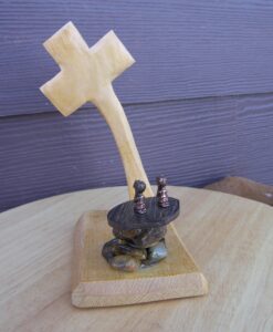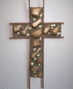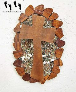 Each Cross is a unique one of a kind Creation, are created from materials provided by God. Enhanced by the artist Kim – God guides my hands on each piece of wood, making each into a beautiful one of a kind cross. As no two people are the same, no two crosses are the same; each is unique and special. Many designs are for both display as well as for the comfort that comes from holding one in your hand. So that you remember, we are children of God; our Father is always walking with us and holding our hand.