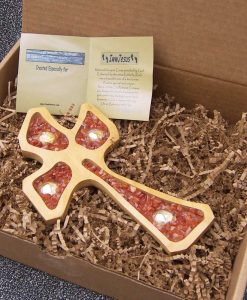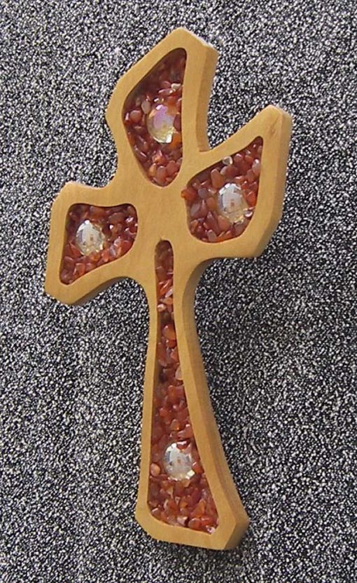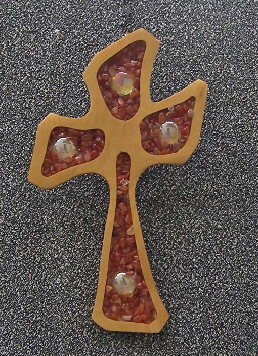 Each Cross is a unique one of a kind Creation, are created from materials provided by God. Enhanced by the artist Kim – God guides my hands on each piece of wood, making each into a beautiful one of a kind cross. As no two people are the same, no two crosses are the same; each is unique and special. Many designs are for both display as well as for the comfort that comes from holding one in your hand. So that you remember, we are children of God; our Father is always walking with us and holding our hand.