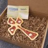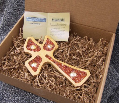 Each of my crosses come packed in a very nice Kraft corrugated box (see photo) with the created especially for Tag.