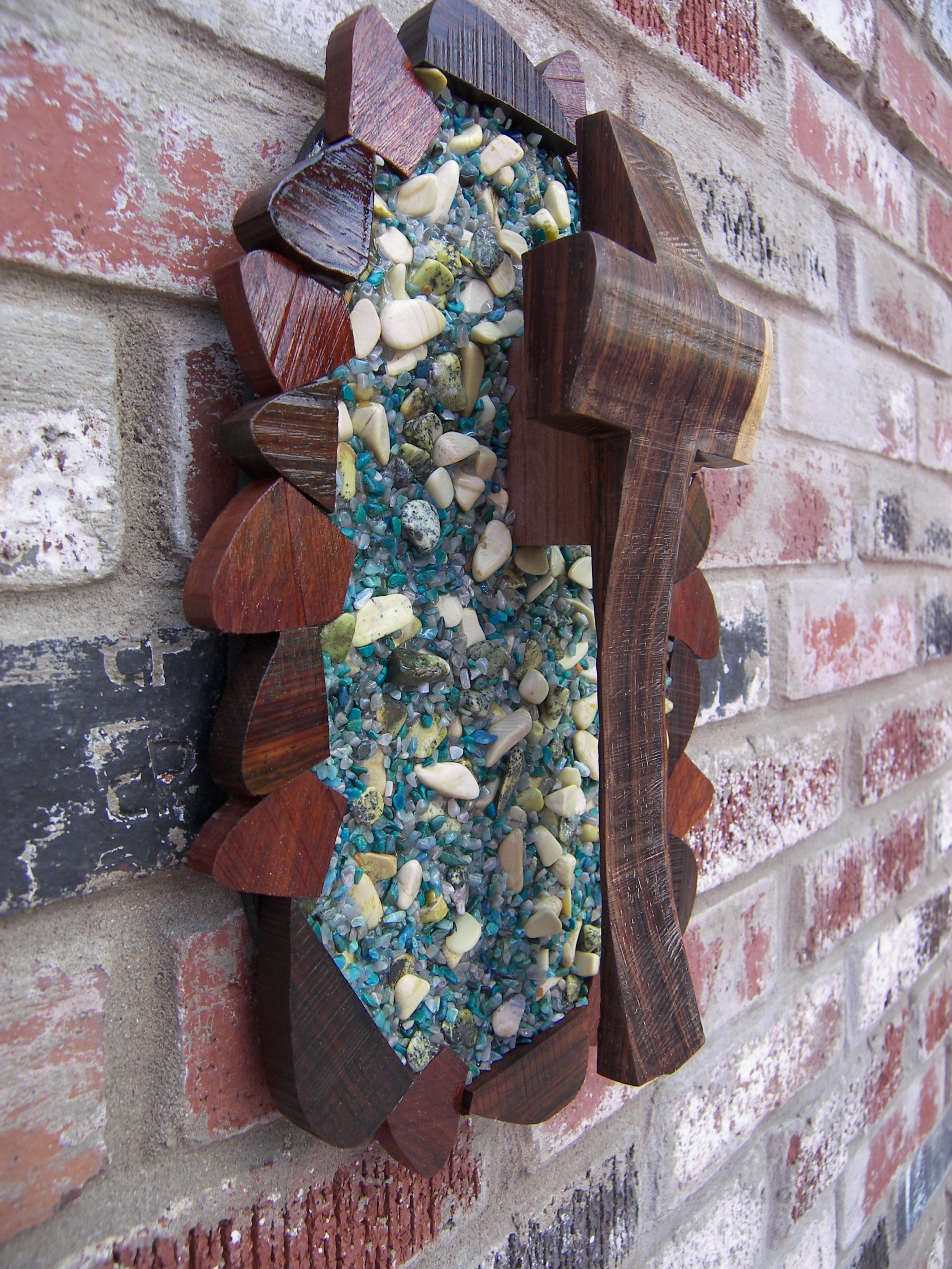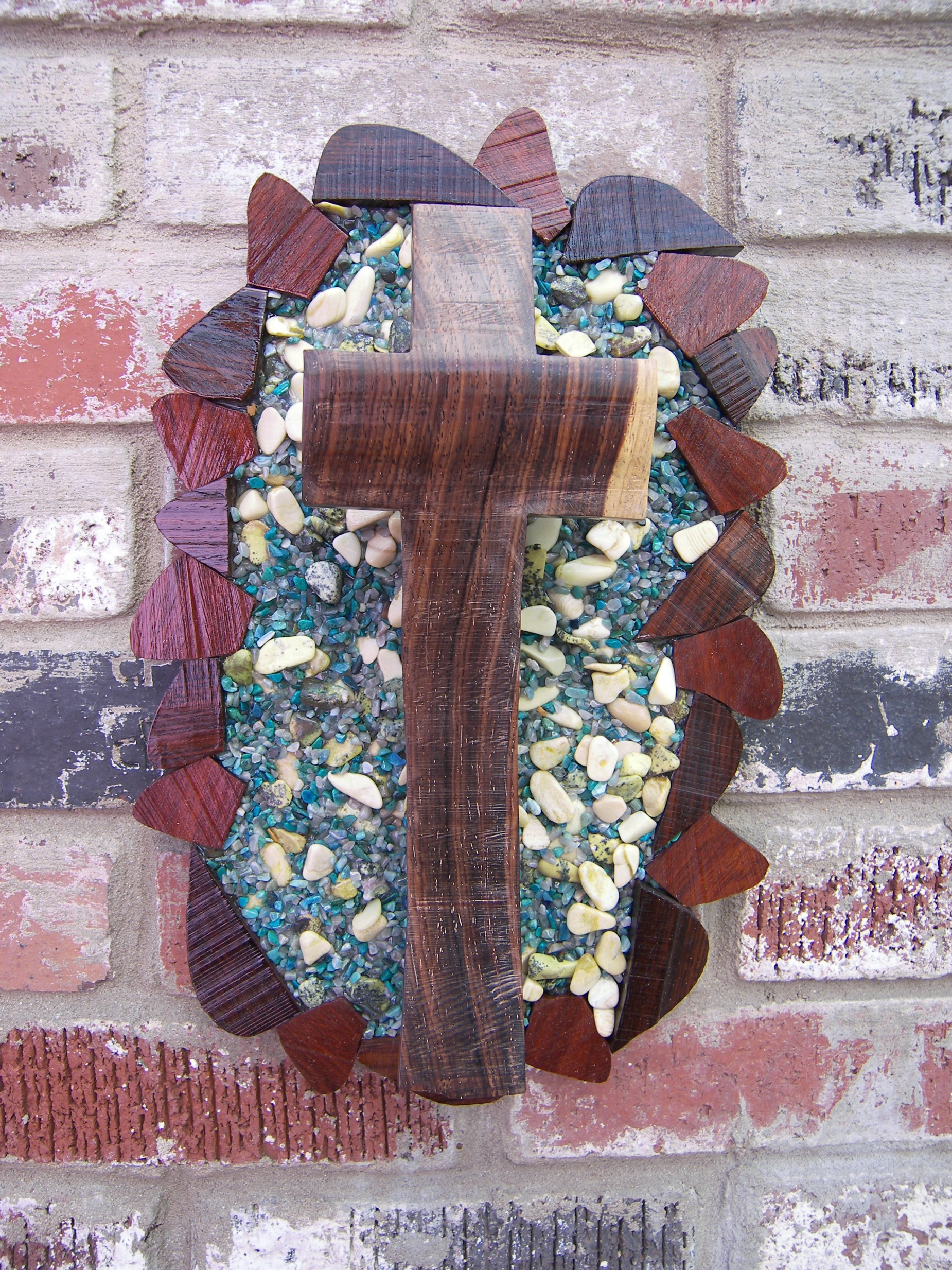 Each Cross is a unique one of a kind Creation, are created from materials provided by God. Enhanced by the artist Kim – God guides my hands on each piece of wood, making each into a beautiful one of a kind cross. As no two people are the same, no two crosses are the same; each is unique and special. Many designs are for both display as well as for the comfort that comes from holding one in your hand. So that you remember, we are children of God; our Father is always walking with us and holding our hand.