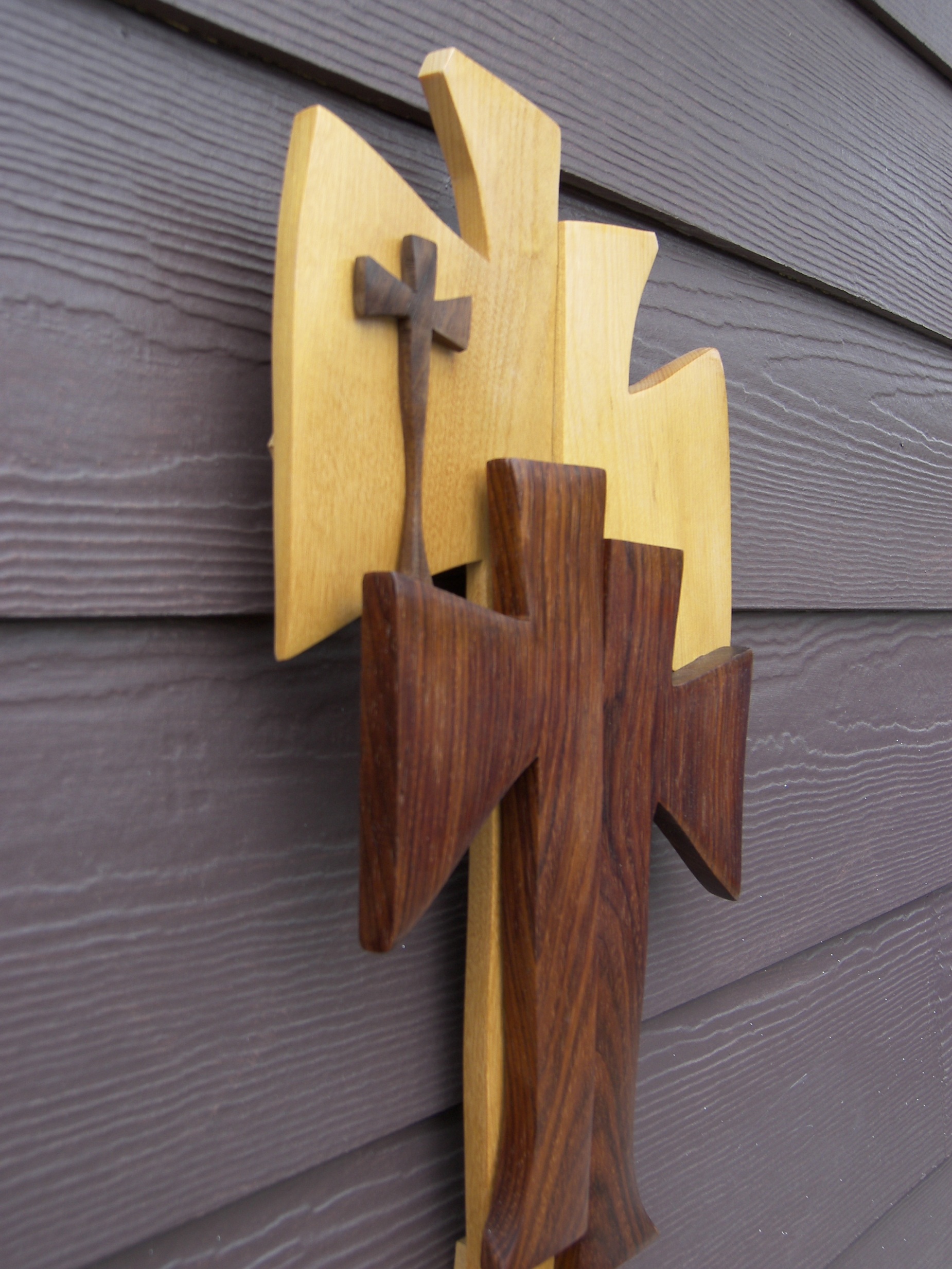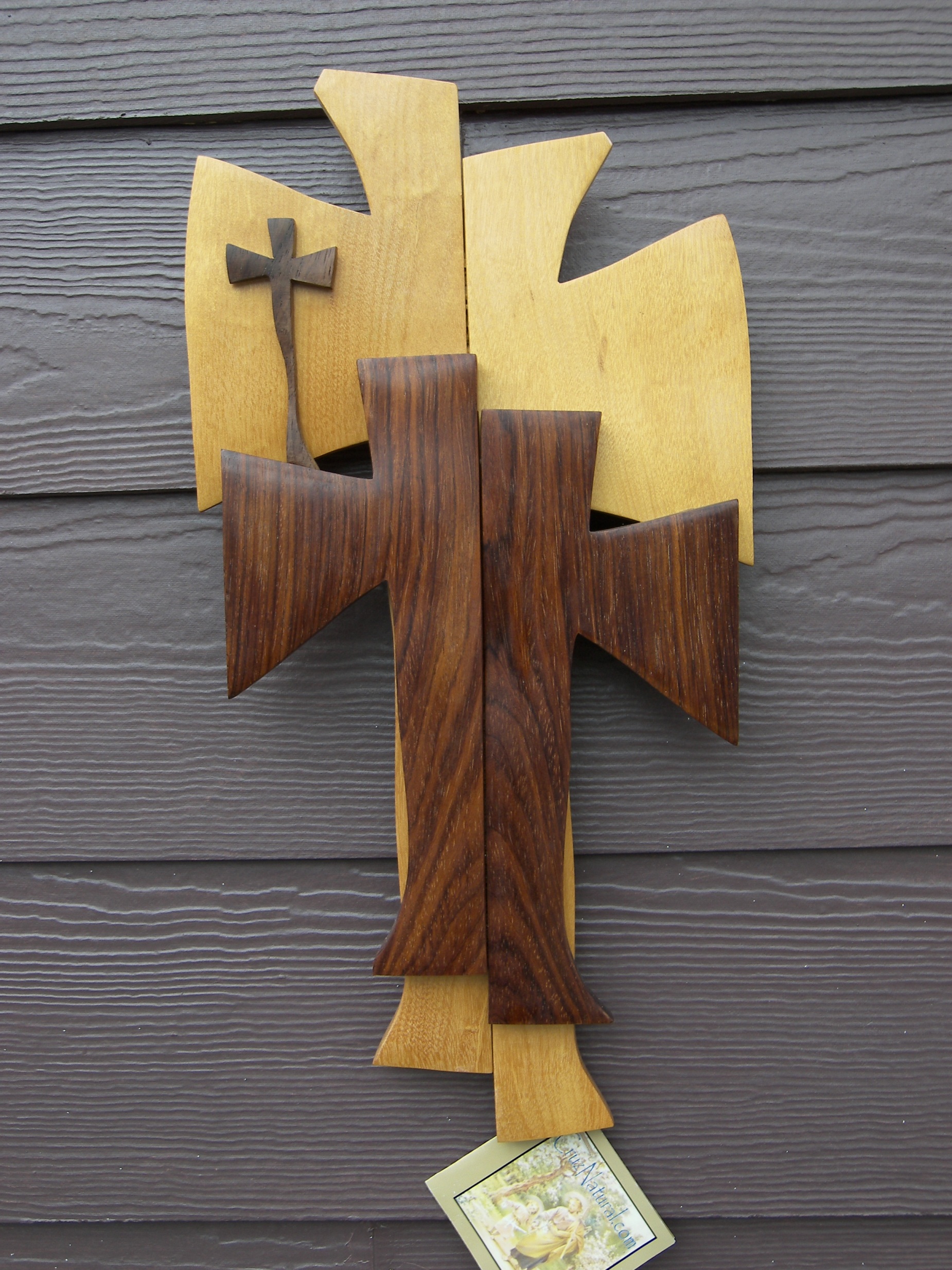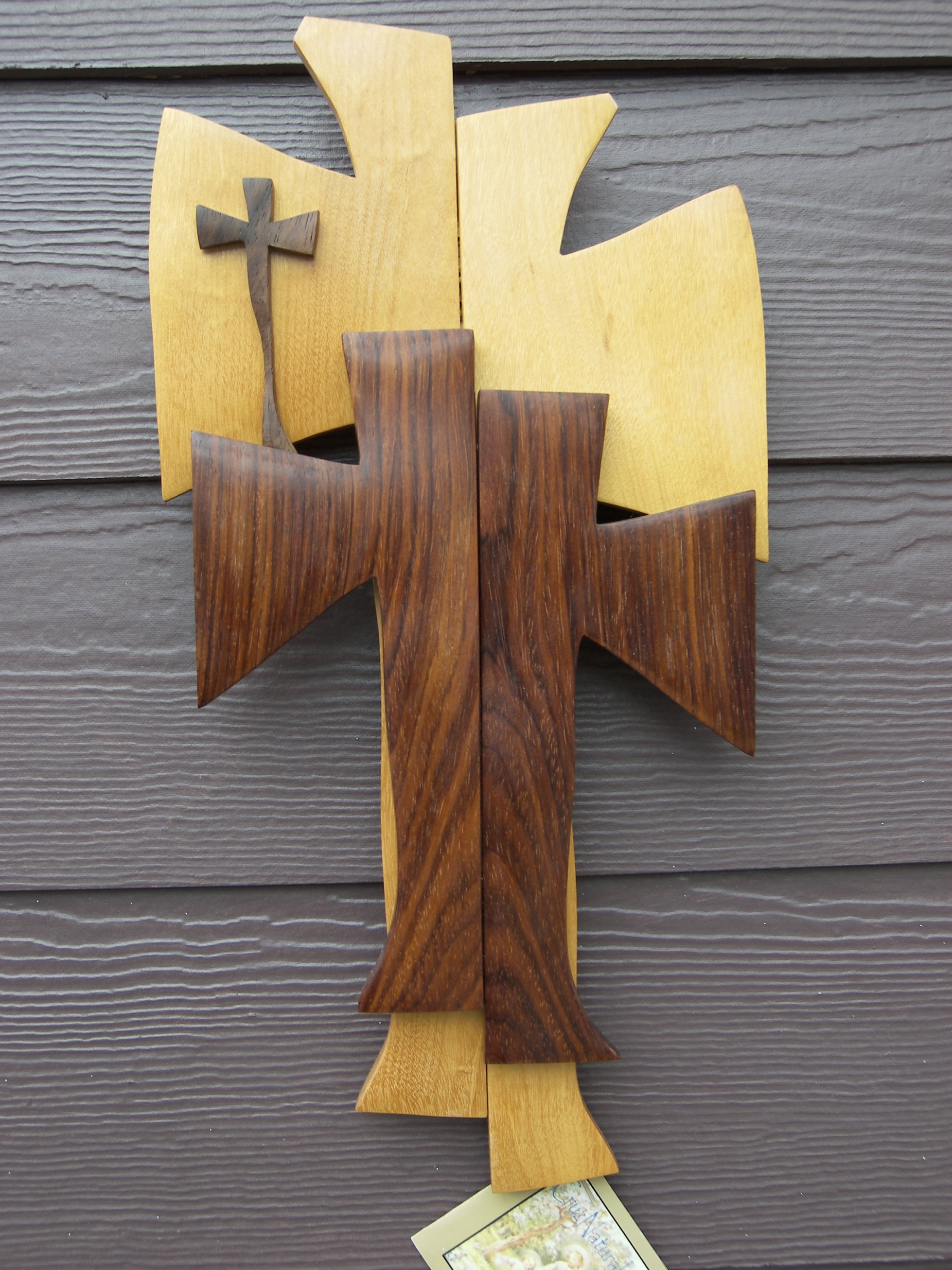 Each Cross is a unique one of a kind Creation, are created from materials provided by God. Enhanced by the artist Kim – God guides my hands on each piece of wood, making each into a beautiful one of a kind cross. As no two people are the same, no two crosses are the same; each is unique and special. Many designs are for both display as well as for the comfort that comes from holding one in your hand. So that you remember, we are children of God; our Father is always walking with us and holding our hand.